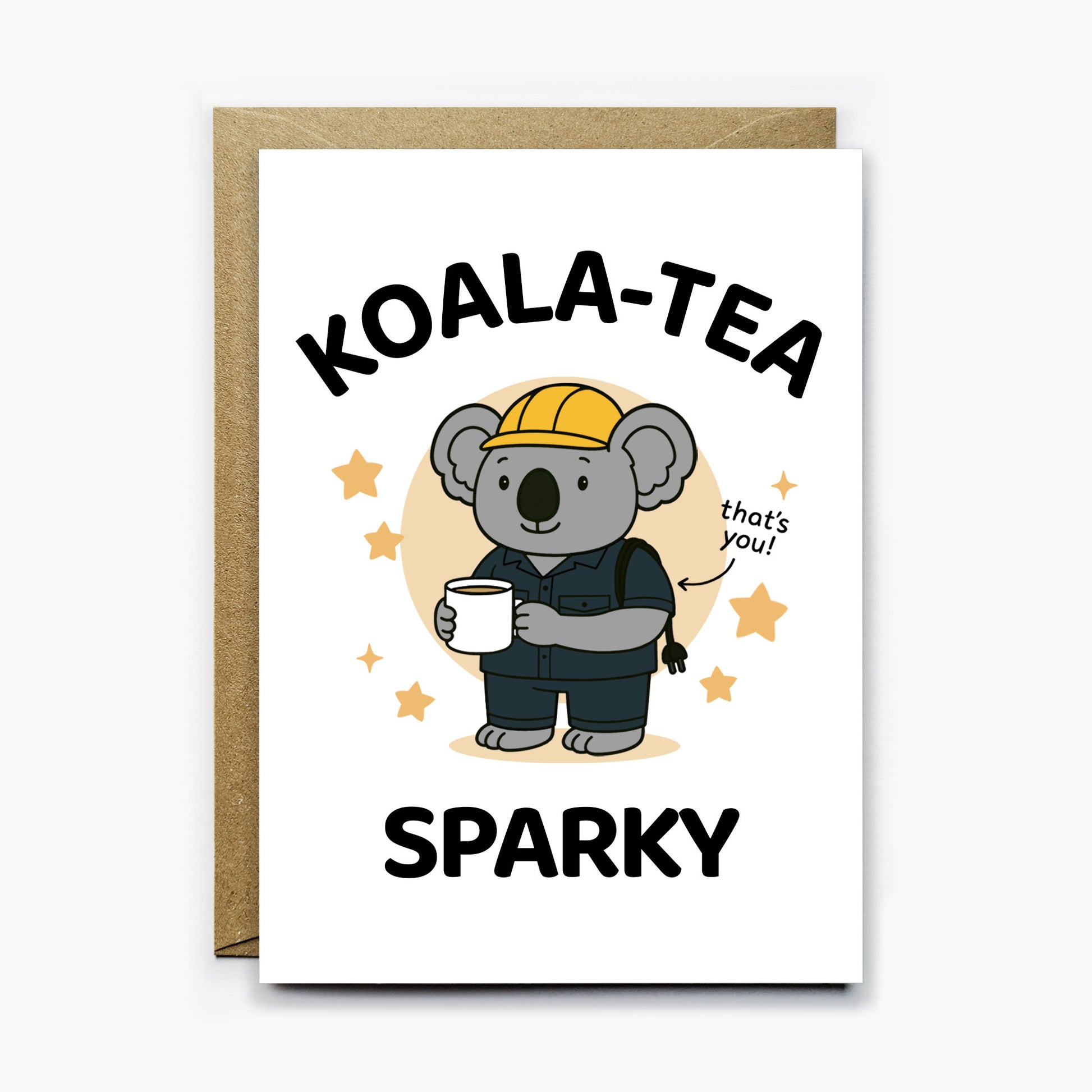 This funny and light-hearted greetings card is perfect for letting your favourite electrician know just how appreciated they are. Featuring a cute koala design and playful pun, it’s ideal for birthdays, thank yous, Christmas or new jobs. A simple way to show they’re truly koala-tea!