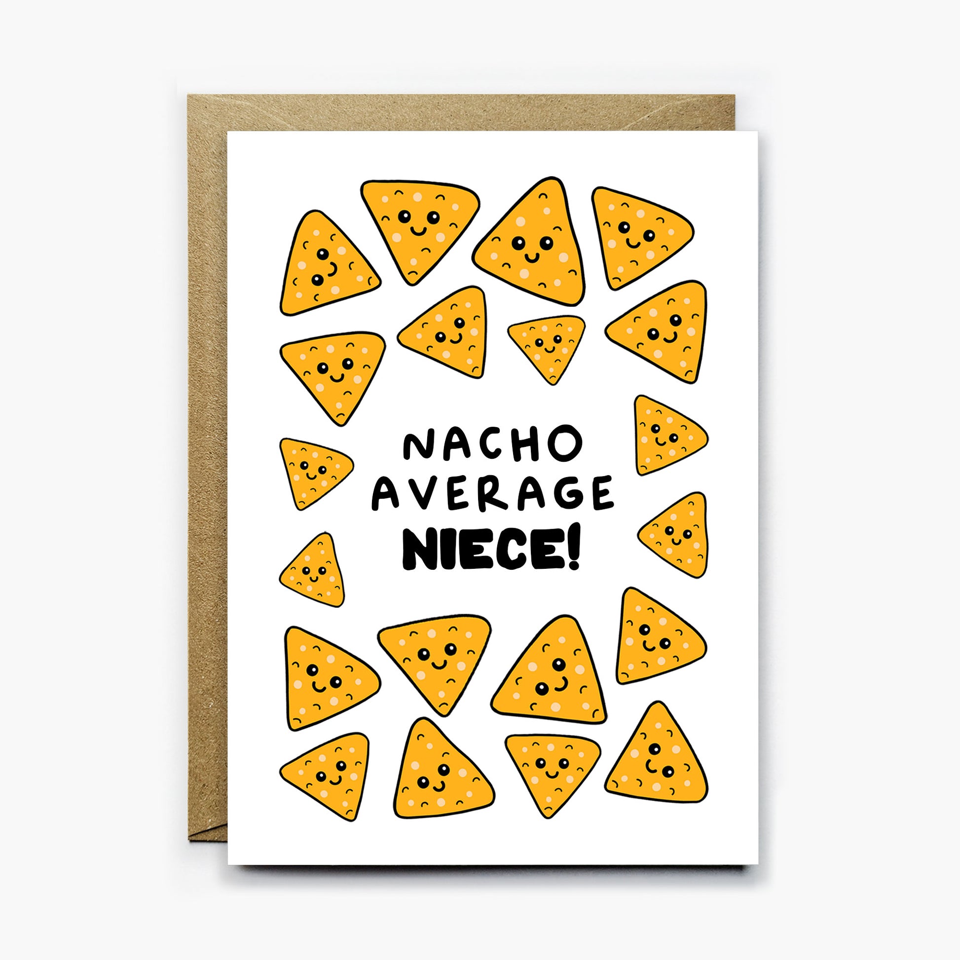 The printed text on the card reads: nacho average niece!