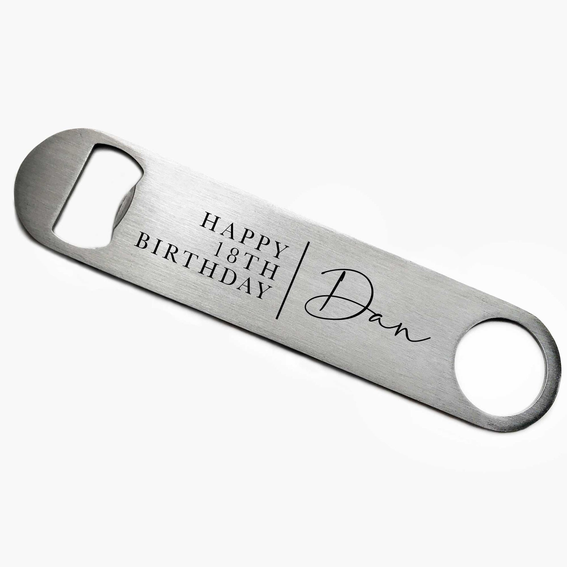Celebrate their 18th birthday with this personalised steel bottle opener!