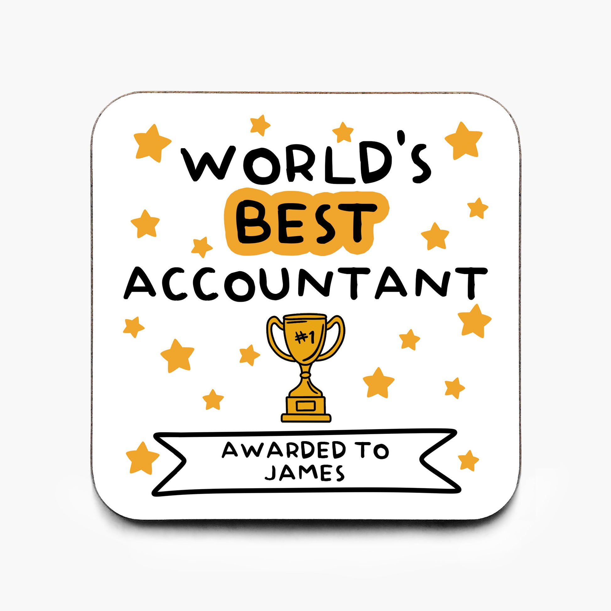 The printed text on the coaster reads: world's best accountant awarded to [name]