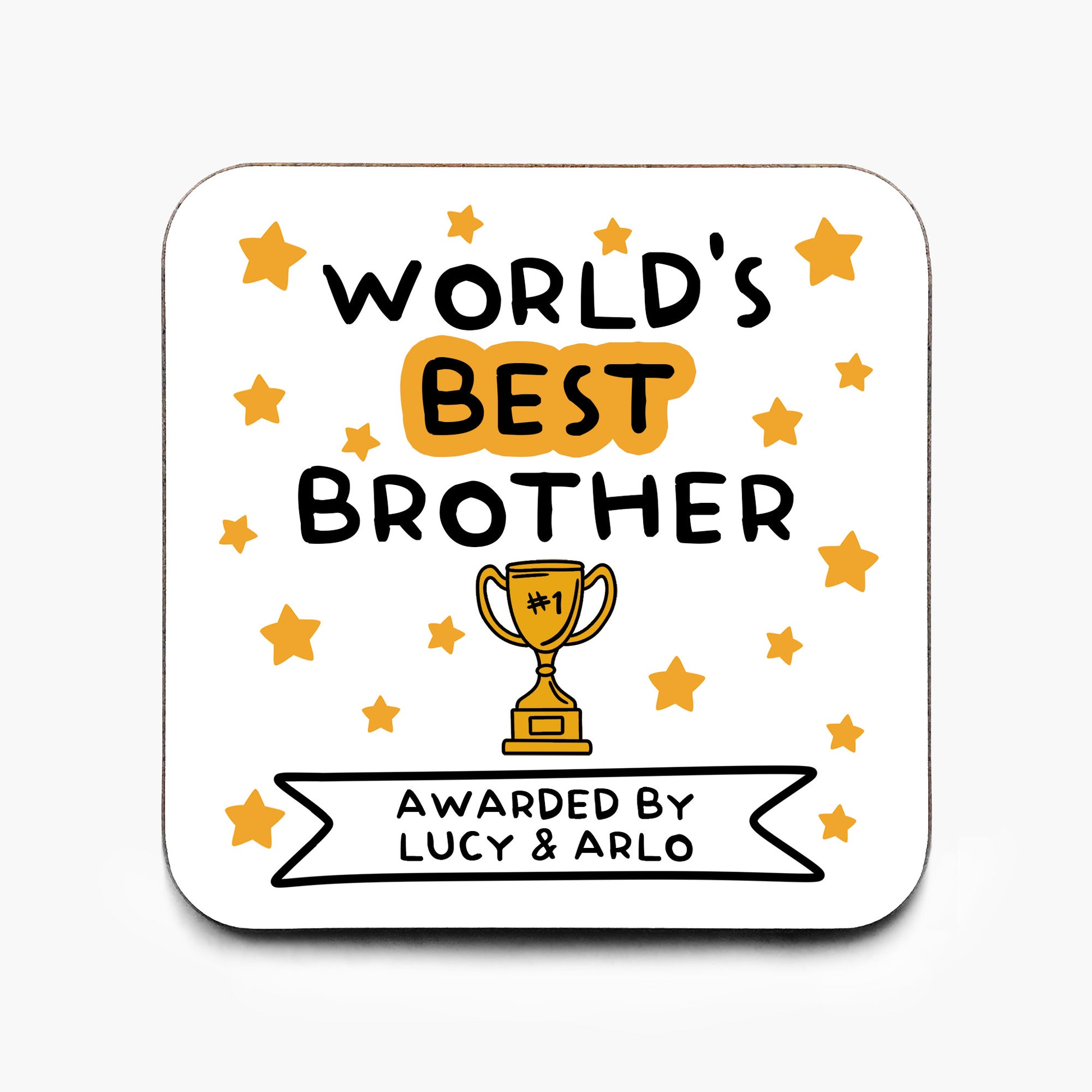 The printed text on the coaster reads: world's best brother awarded by [name or names]