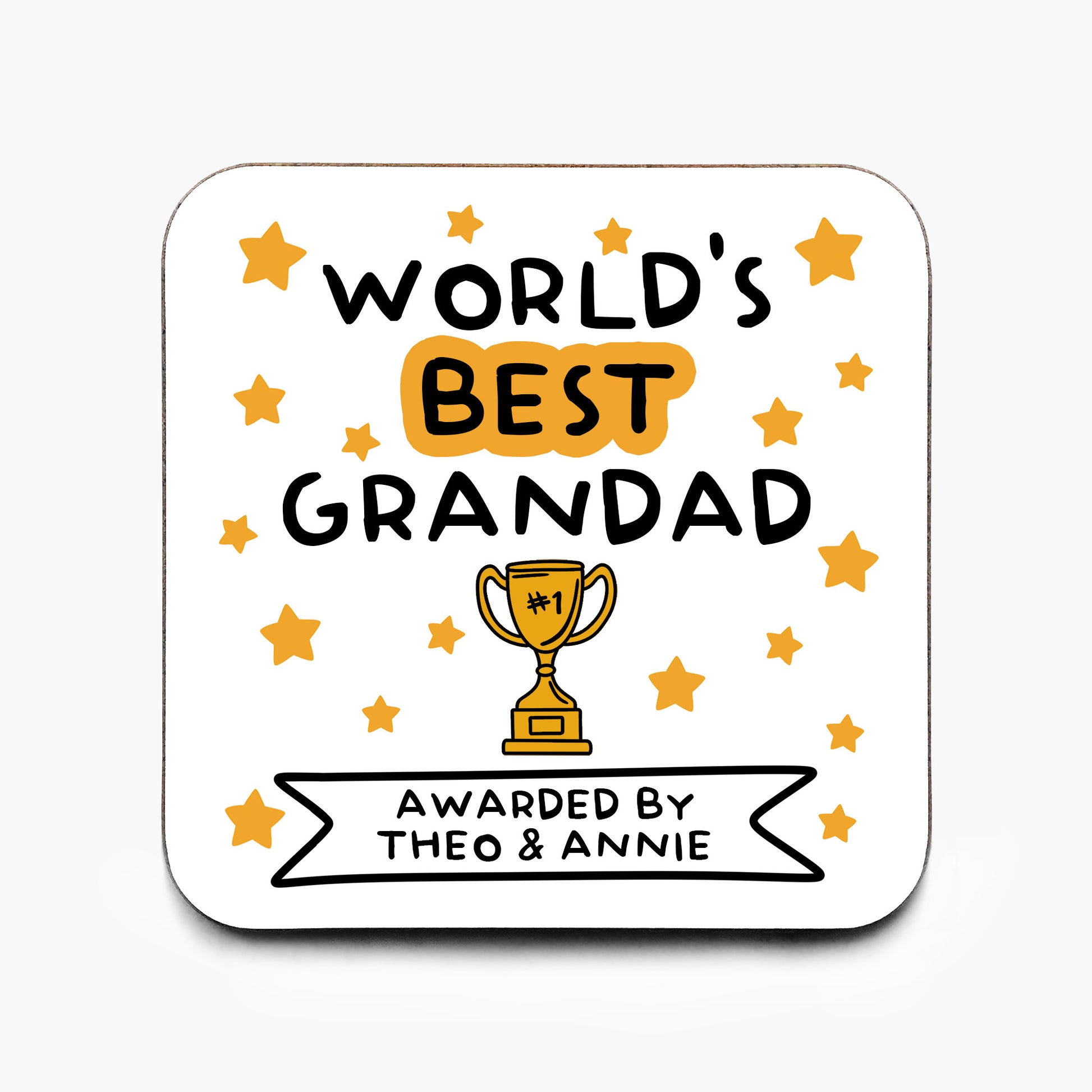 The printed text on the coaster reads: world's best grandad awarded by [name or names]