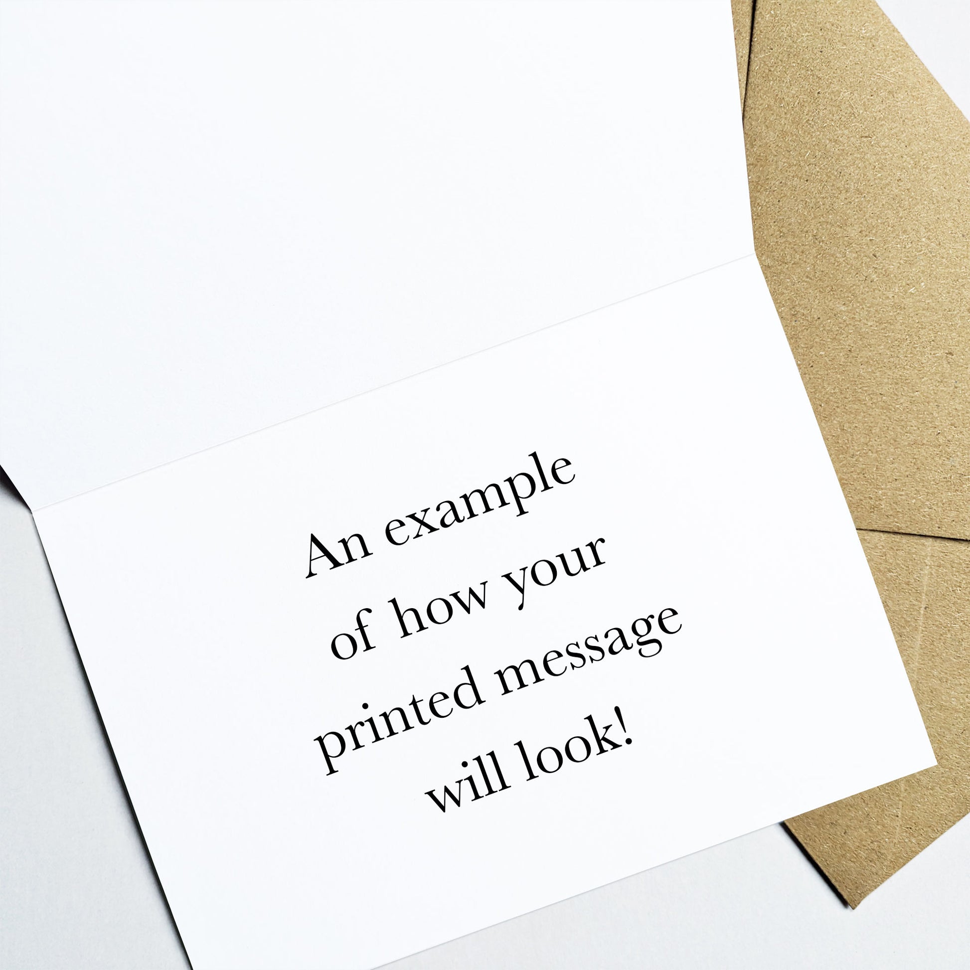 If you would like a printed message inside of the card, please enter it in the personalisation box: