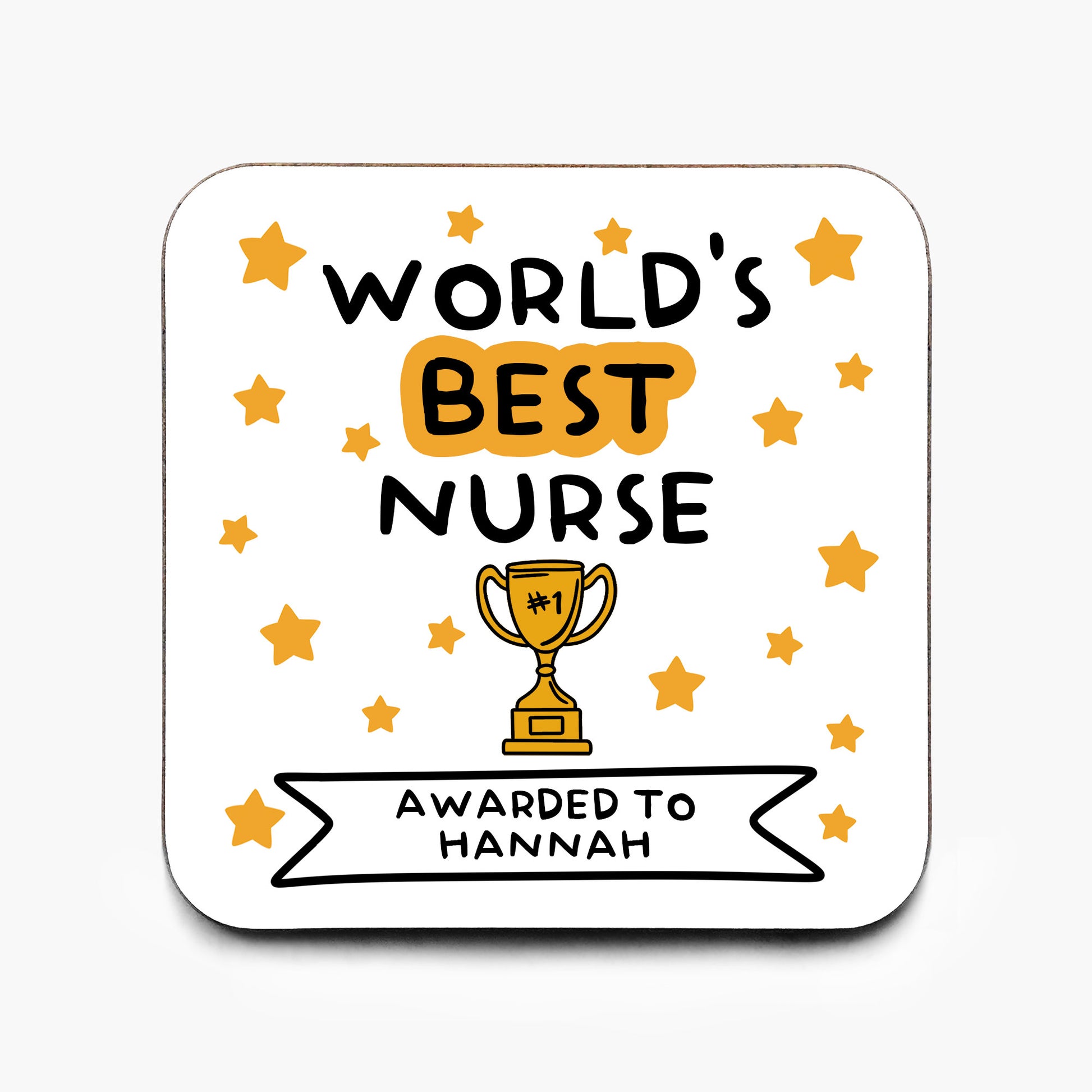 The printed text on the coaster reads: world's best nurse awarded to [name]